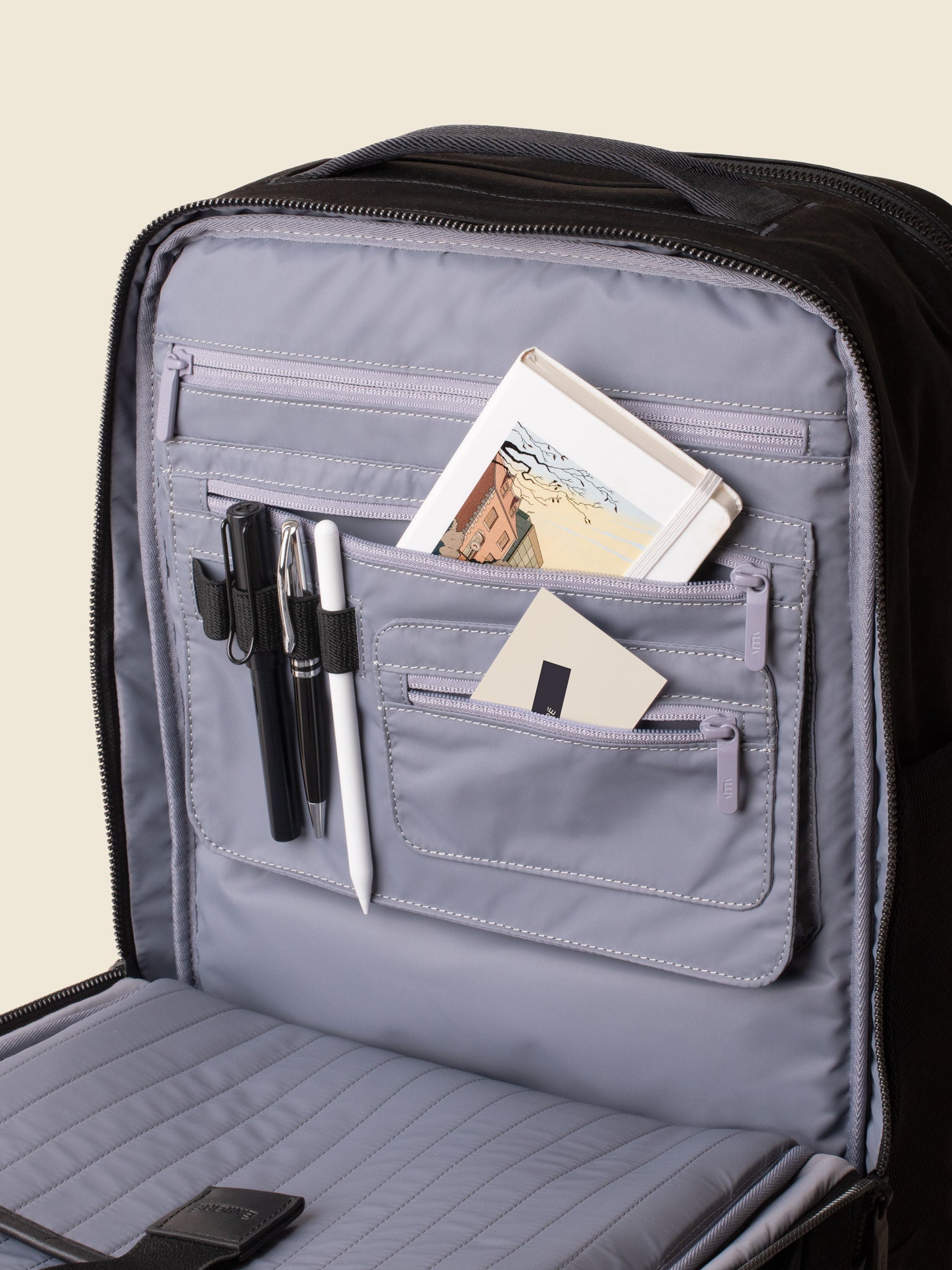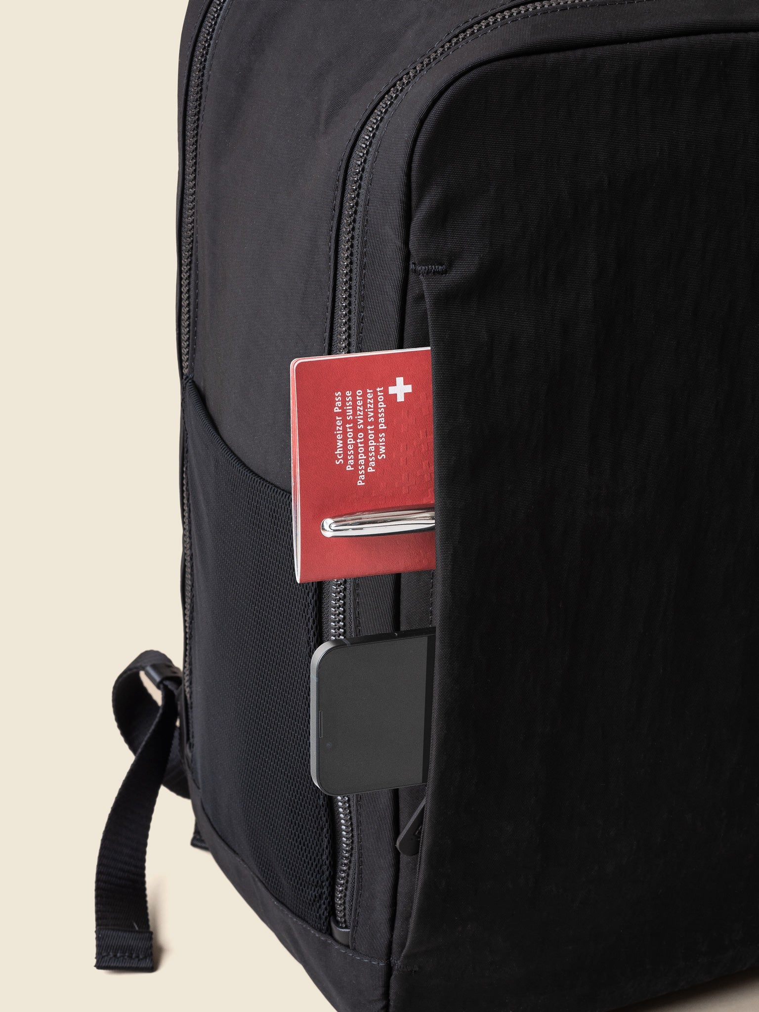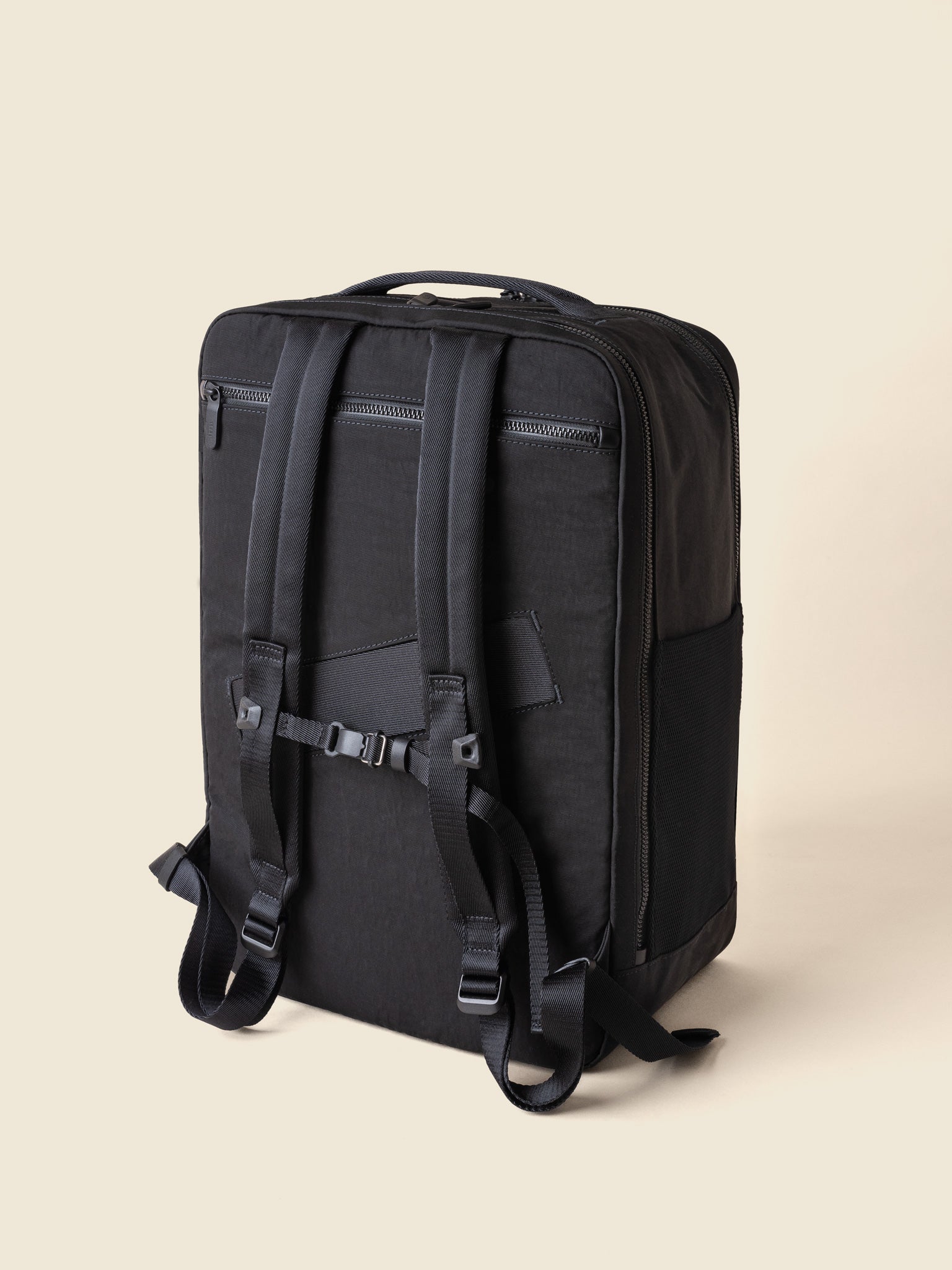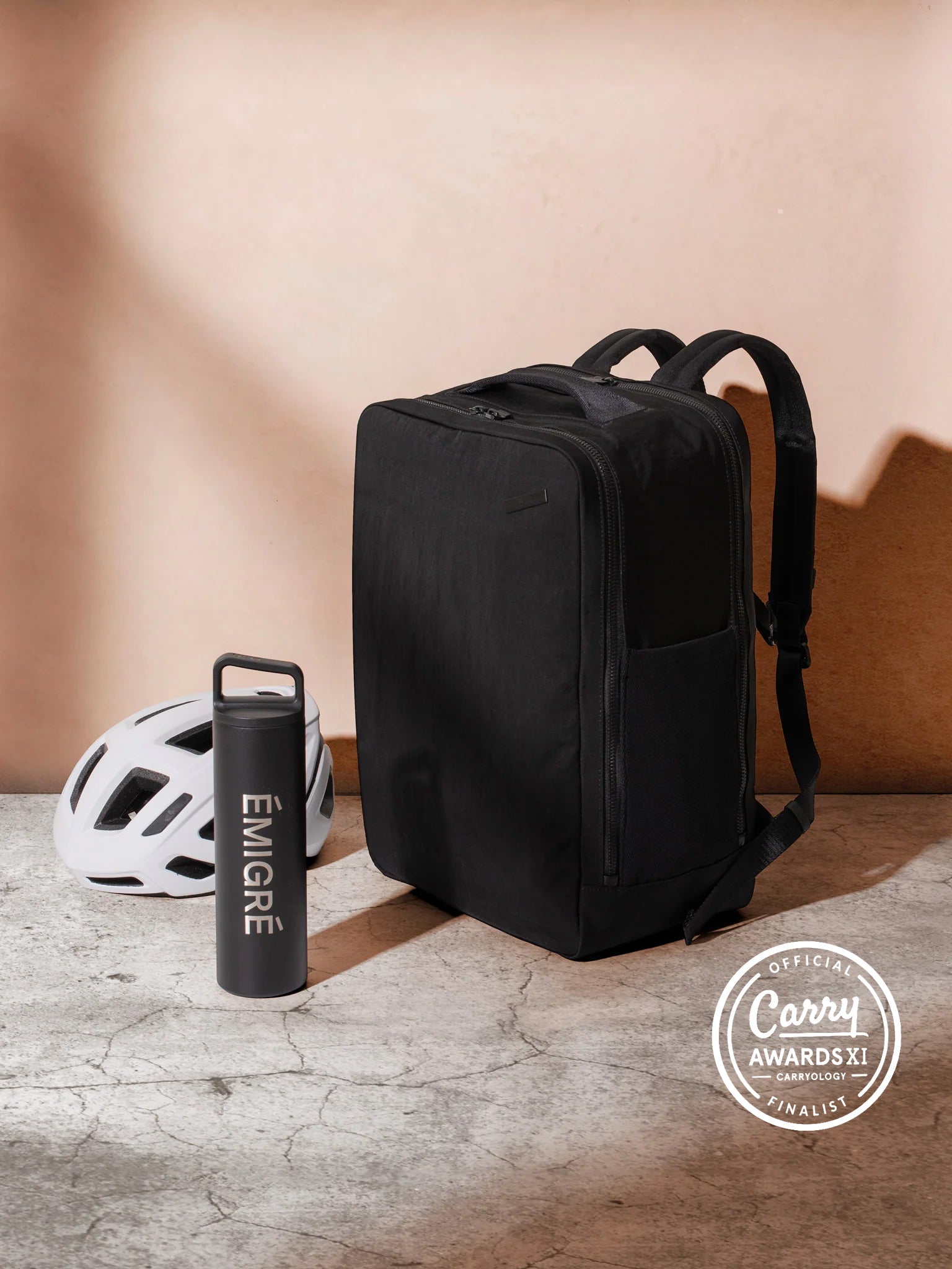 From its unbreakable bond with outdoor explorers to today’s digital nomads, the classic black backpack is the ultimate chameleon for those embracing an active and on-the-go lifestyle. With signature specs, artful aesthetics, and durable, all purpose functionality, the larger capacity Émigré Active Backpack is tailored for short to mid-haul trips and the daily home-office-gym commute. Lightweight, convenient and durable with the added refinement of Émigré's signature style and functional aesthetic.