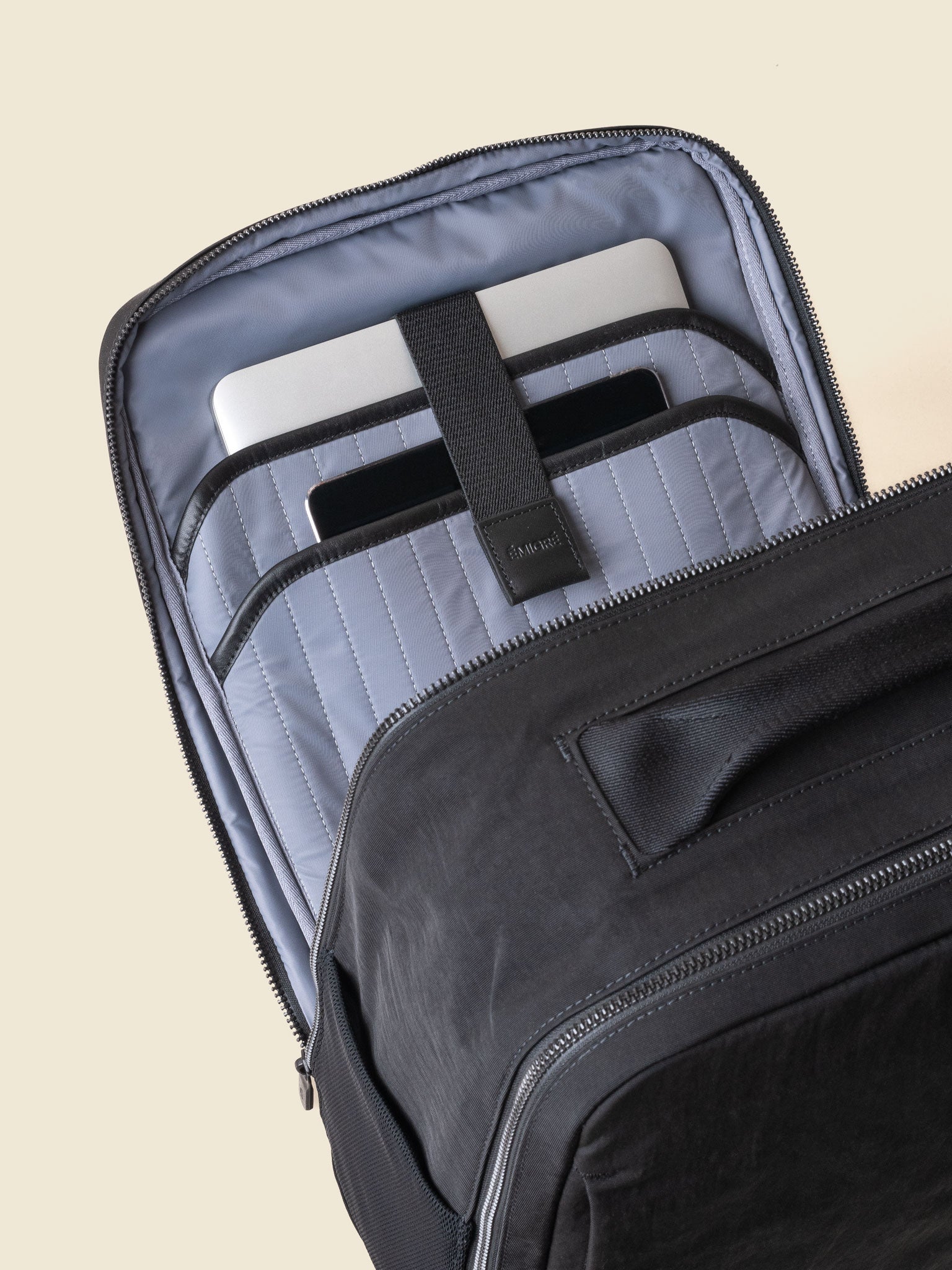 Drawing on years of innovation from the outdoor industry, we designed our bags with a signature, hard-wearing outer-shell material that compromised nothing on style. Made from 100% recycled Bluesign® and GRS certified Robic® nylon, our bags are ultra-lightweight, abrasion and water resistant and ethically made. An smart fusion of utility, style and sustainable vision ideal for today's travelling professional.