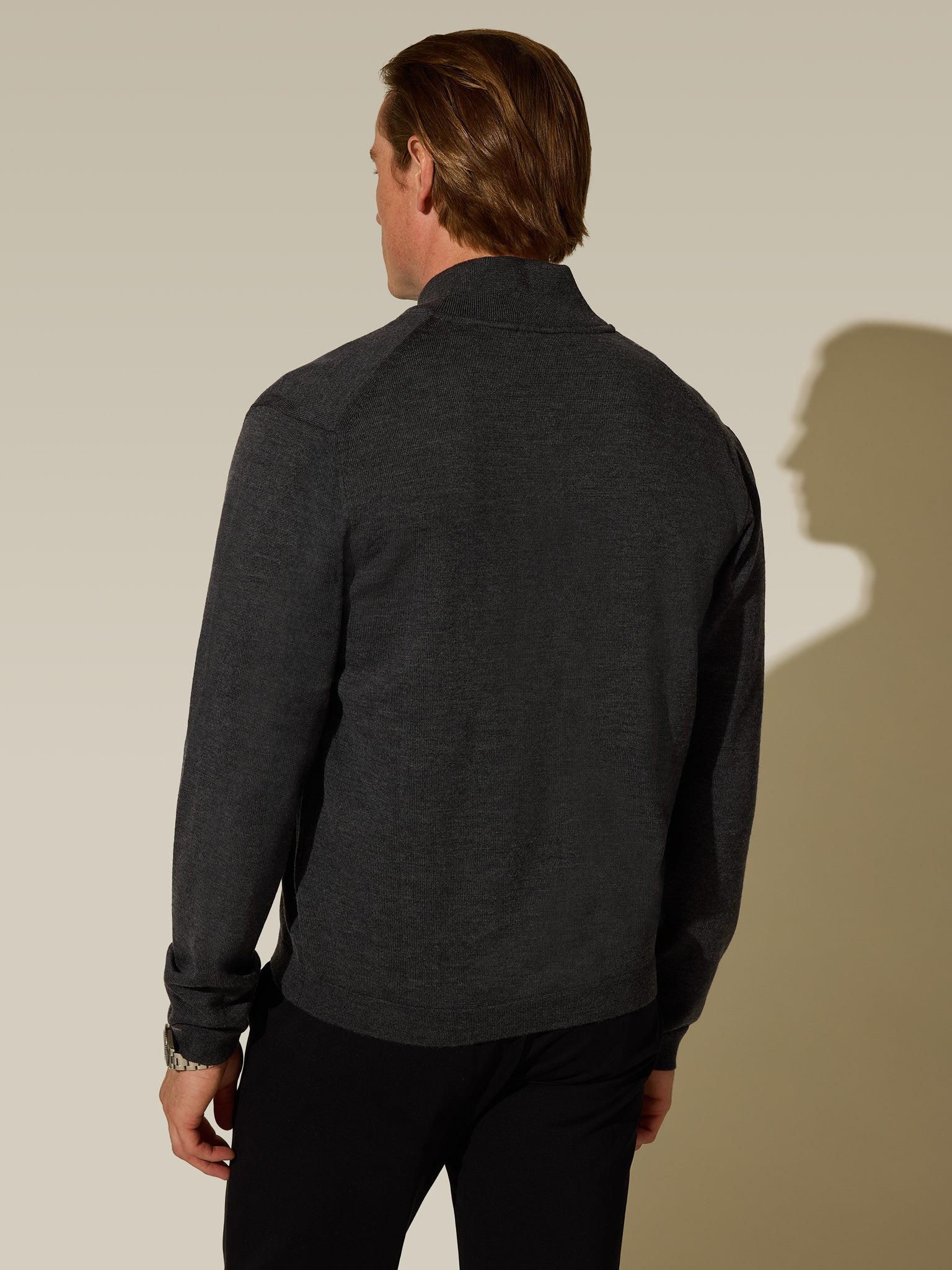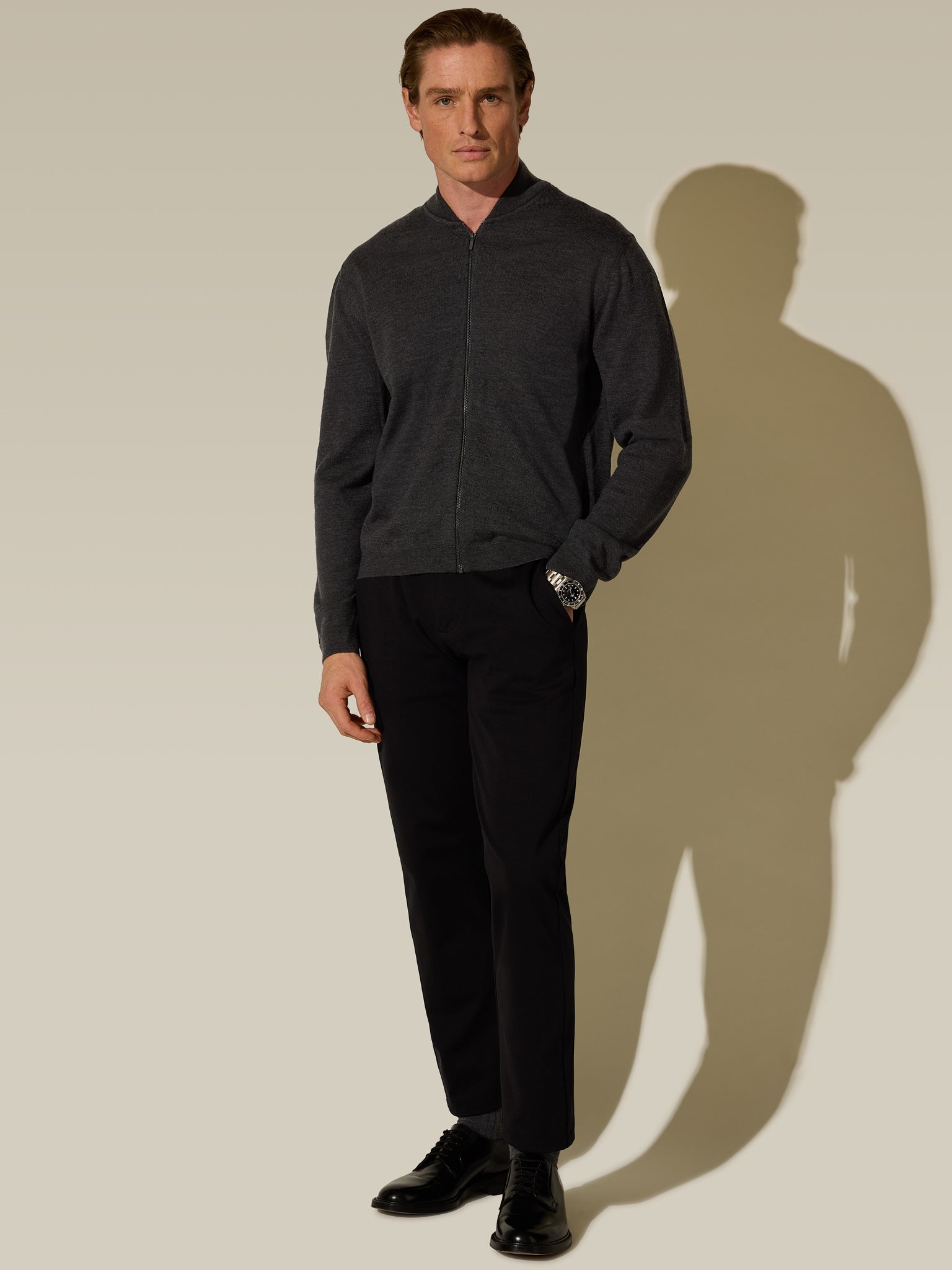 Made in Portugal using ultra-soft Italian-spun merino CASHWOOL® from Baruffa, our mid-weight Merino Zip Cardigan in Downtown Grey provides temperature regulation, anti-static, anti-itch and anti-odour functions. Contemporary in both style and function and ideal for wearing year-round, it looks especially sharp layered under our Émigré Blazer.
