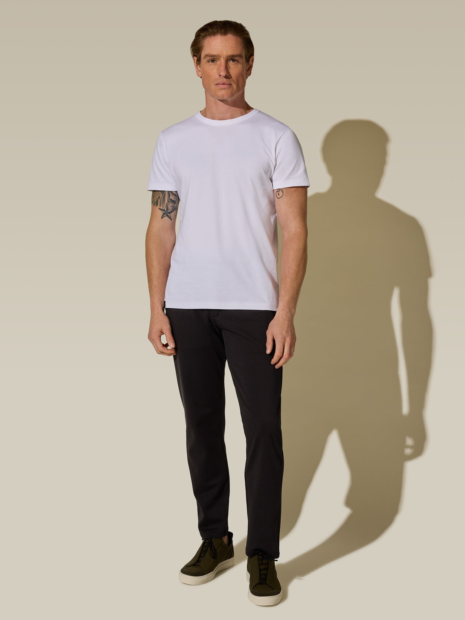 When crafting the perfect T-shirt, fabric choice is key. That's precisely why we selected a luxurious 190grams knit fabric, made in Portugal from 100% organic cotton, for our Travel T-shirt. Enhanced with PLUMMY® technology, this premium fabric boasts a luxurious aesthetic, highlighted by a subtle sheen that sets it apart. Its natural stretch, silky hand-feel, and inherent performance qualities keep you comfortable and stylish across your travels.