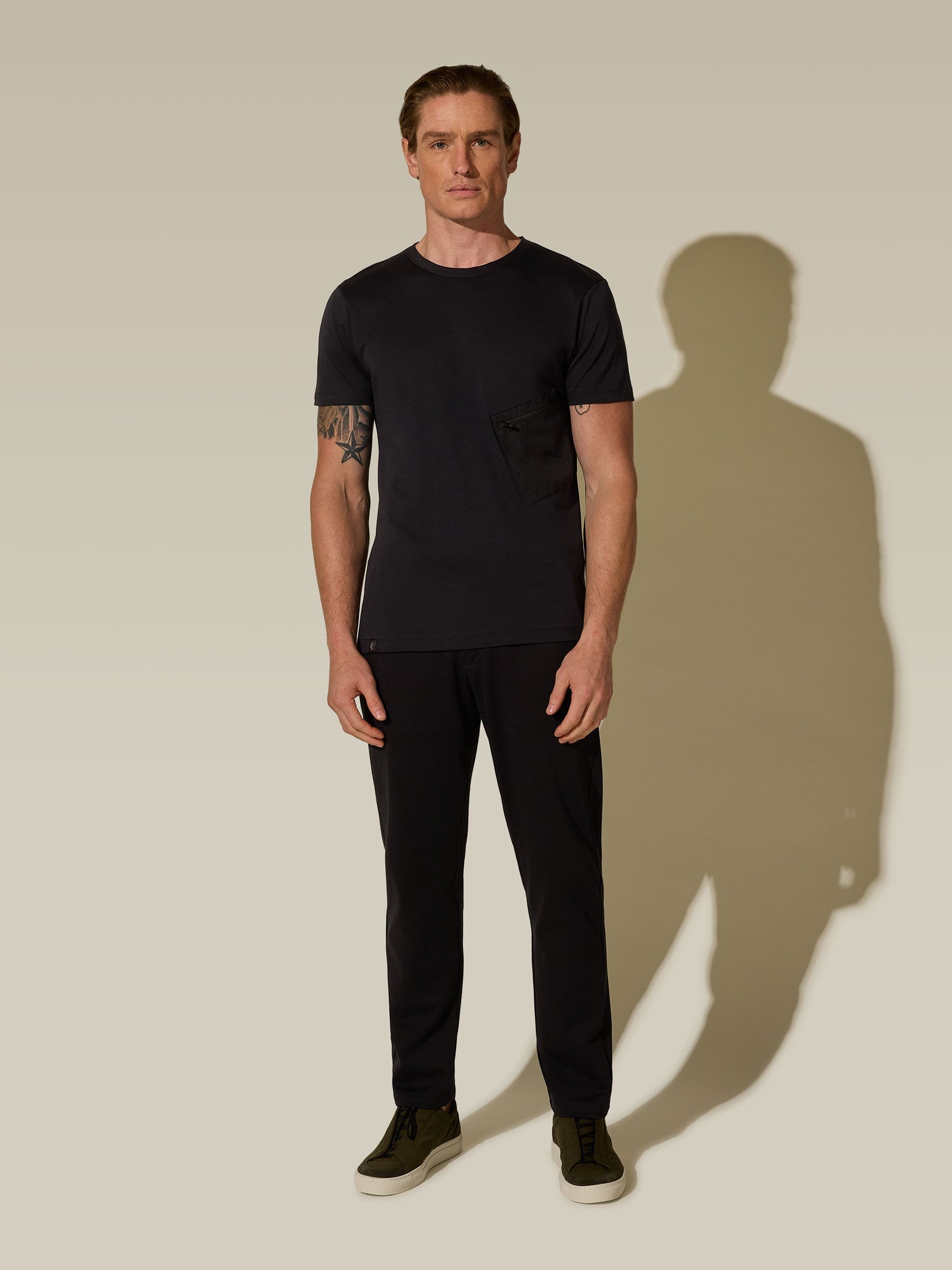 It’s called a Travel Tee for a reason. Keep your passport and boarding card secure in the zippered pocket, whilst also having easy access at every travel touchpoint. A tailored fit makes layering on a blazer for a more refined look a natural choice. Go ahead, breeze through security stress-free.