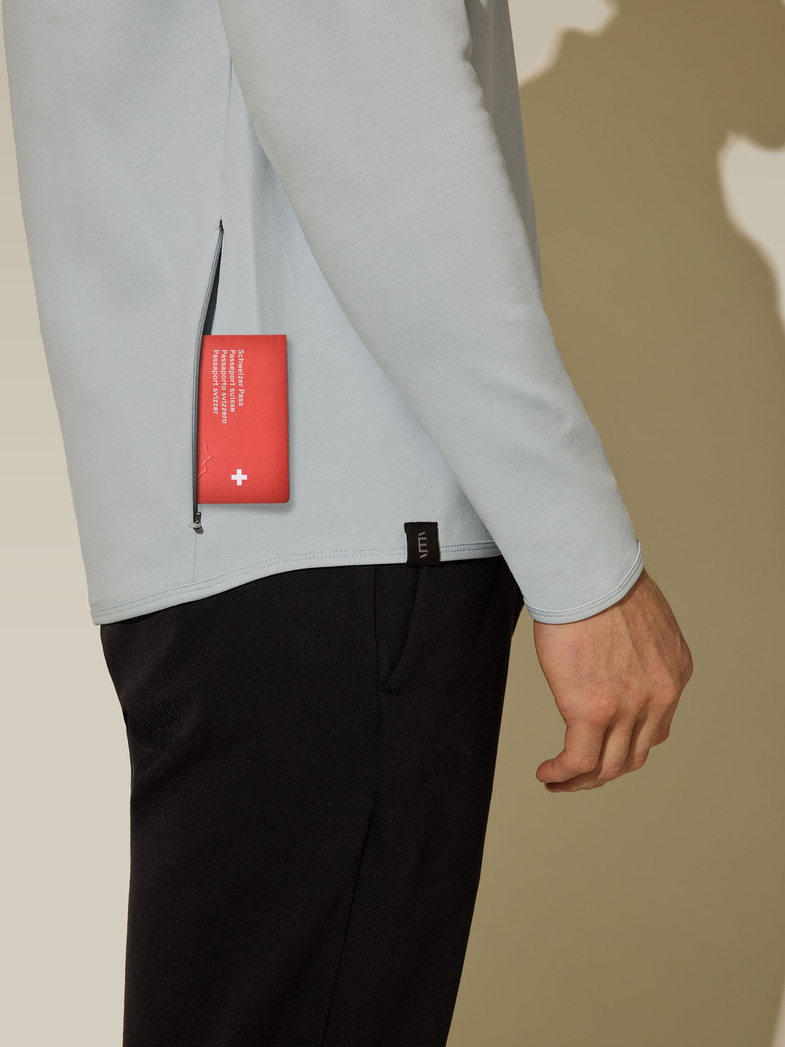 The Transit Half Zip exudes both effortlessness and polish, making it endlessly versatile across all occasions, from formal to casual. Whether layered under our Blazer for the office, or over our Travel Tee for the weekend, it strikes that perfect balance of refinement and ease, while its unique travel-friendly features make transit stylish and stress-free