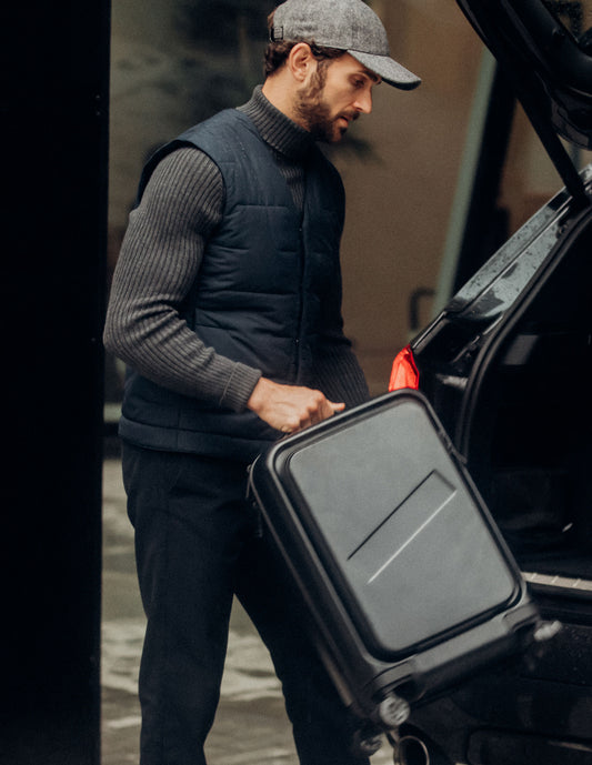 Travelling means constantly moving in and out of different environments and temperatures, so we made our signature Merino Roll Neck from Woolmark and OEKO-TEX® Certified Zegna Baruffa CASHWOOL®, an extra fine merino wool spun entirely in Italy. Highly breathable, moisture wicking, and luxurious to the touch, this premium knit will retain or release heat to accommodate different temperature environments, keeping you comfortable and stylish no matter the setting.