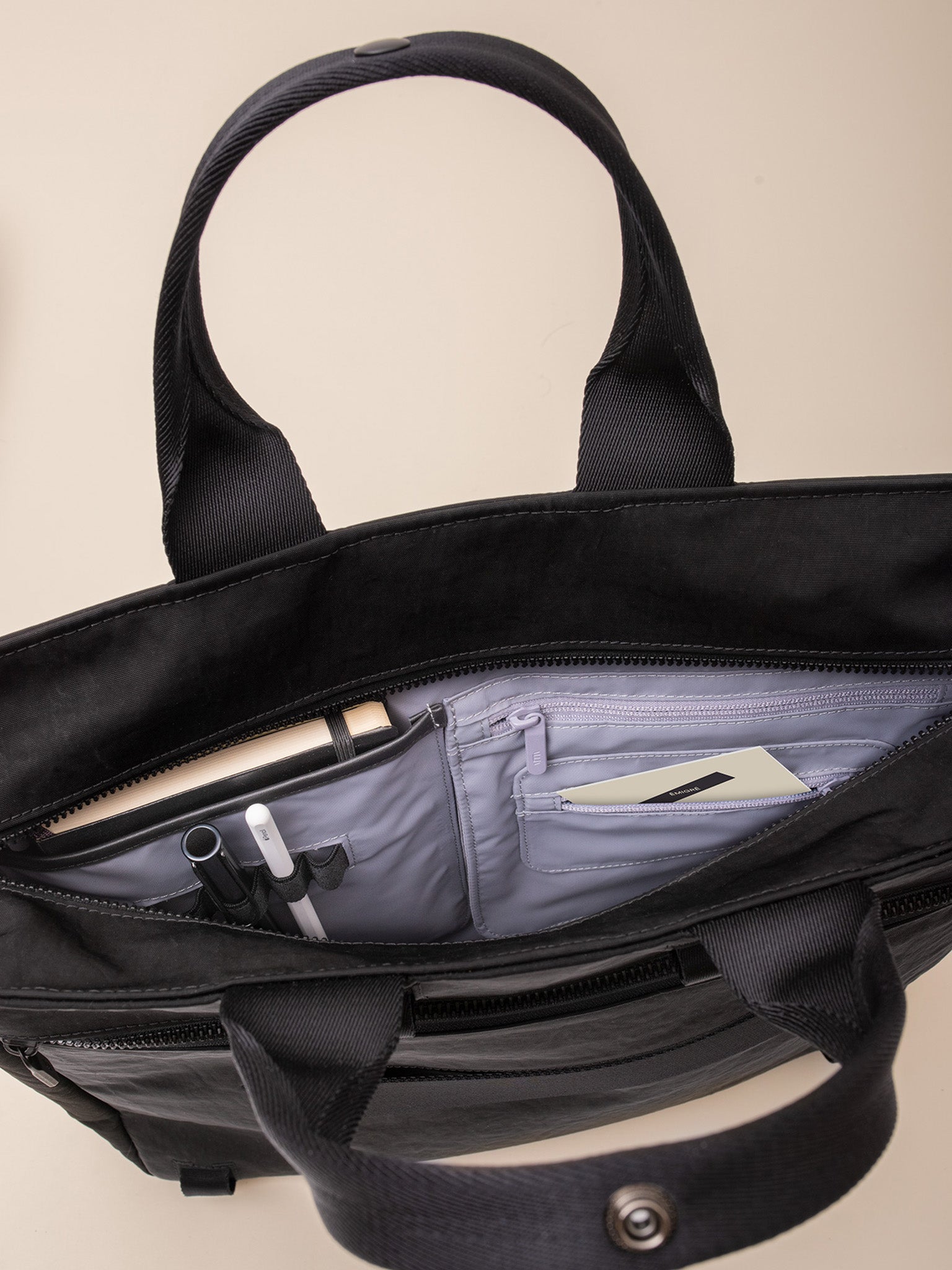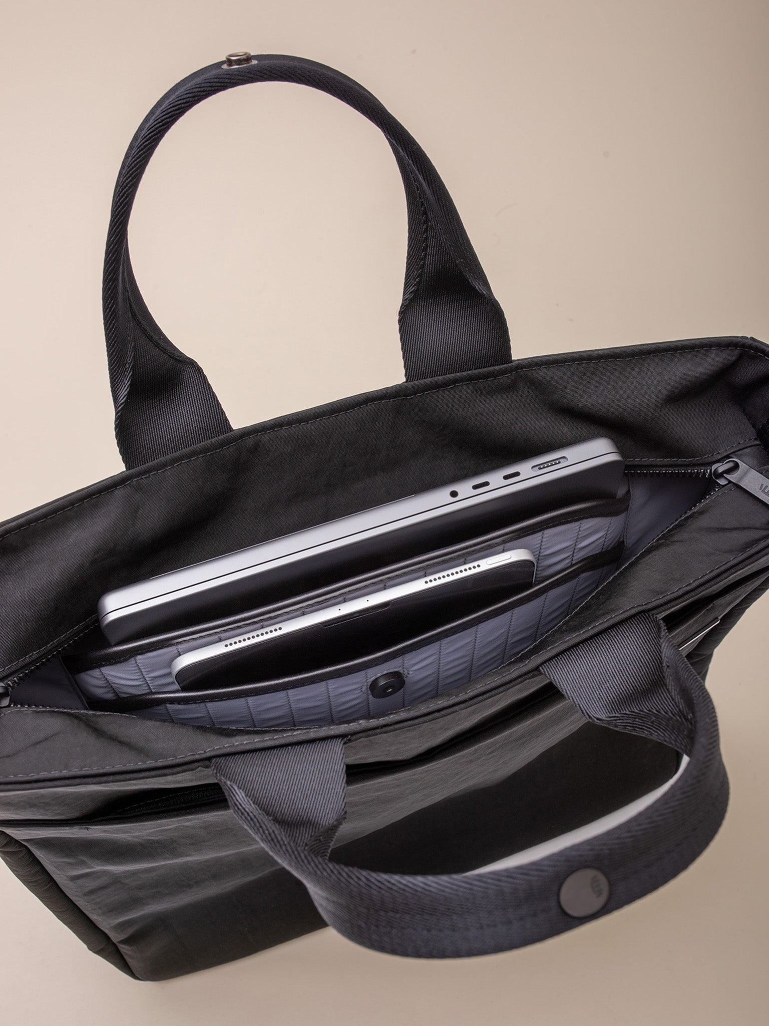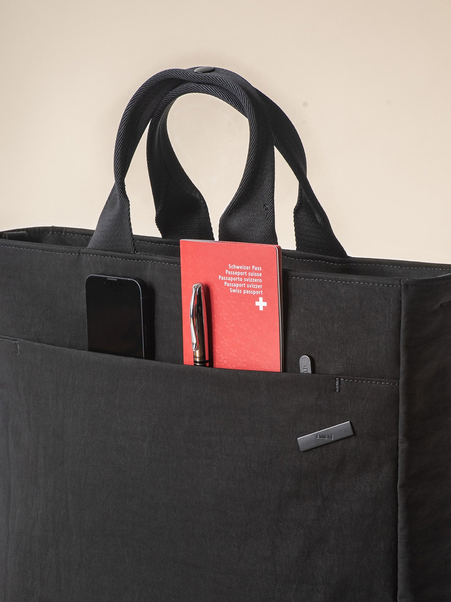 A stylish staple, a roomy and versatile carry all, utilitarian with versatility and edge, the Émigré Tote brings ease of function and form to meet and exceed every brief. Built for shorter business trips and the daily commute, our Tote is as versatile as it is iconic, multitasking across every setting and scene: office, plane and train, local transit, hotel bar and beyond. A bag that defines an action.