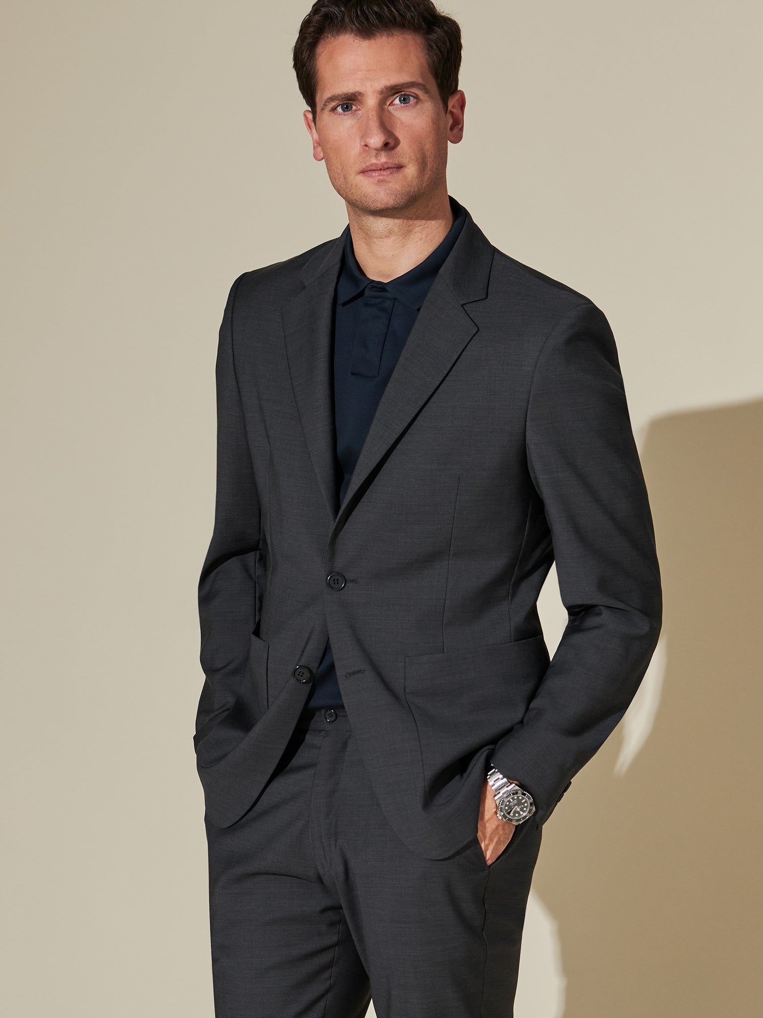 When travelling for work, we understand how important it is to pack economically, travel efficiently and arrive looking sharp. That’s why we made our Four Season Travel Blazer in wool – a sustainable and naturally breathable material that will take you through all climates and environments. We chose premium OEKO-TEX® Certified Marzotto Wool for its fine woven, anti wrinkle properties and natural sheen for that sleek, smart look. Mechanical stretch provides ease of movement, and a water-repellent finish enhances stain resistance.