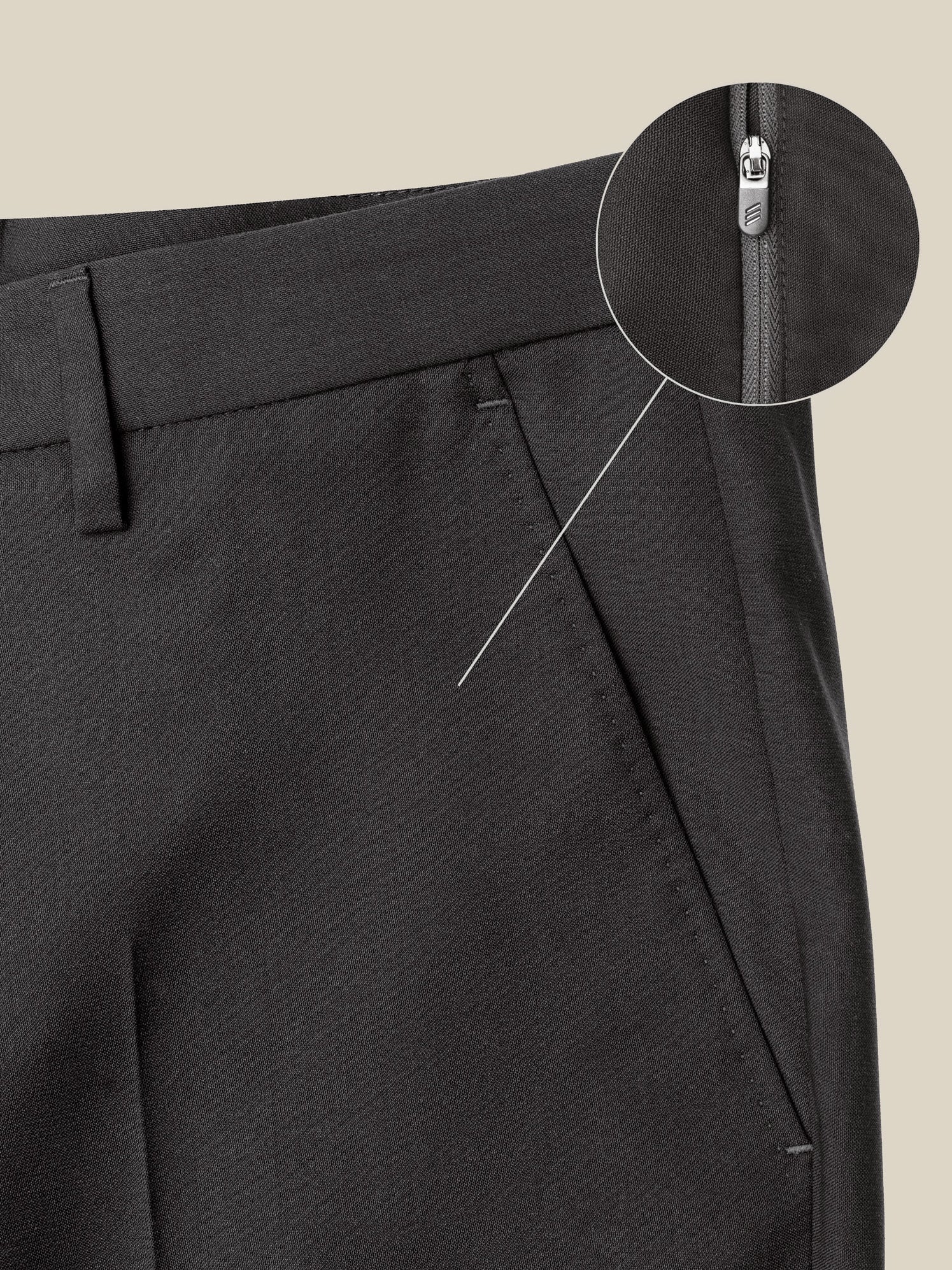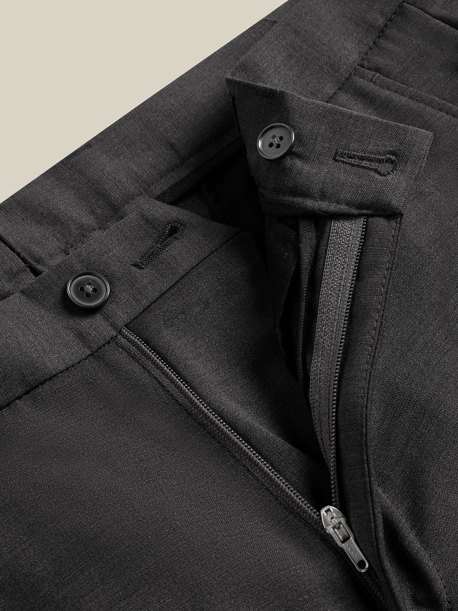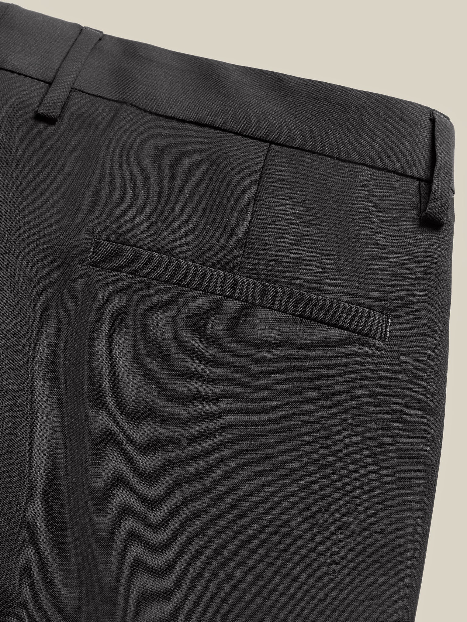 When travelling for work, we understand how important it is to pack economically, travel efficiently and arrive looking sharp. That’s why we made our Four Season Travel Trouser in wool – a sustainable and naturally breathable material that will take you through all climates and environments.  We chose premium OEKO-TEX® certified Marzotto wool for its fine woven, anti wrinkle properties and natural sheen for that sleek, smart look. Mechanical stretch provides ease of movement, and a water-repellent finish enhances stain resistance.