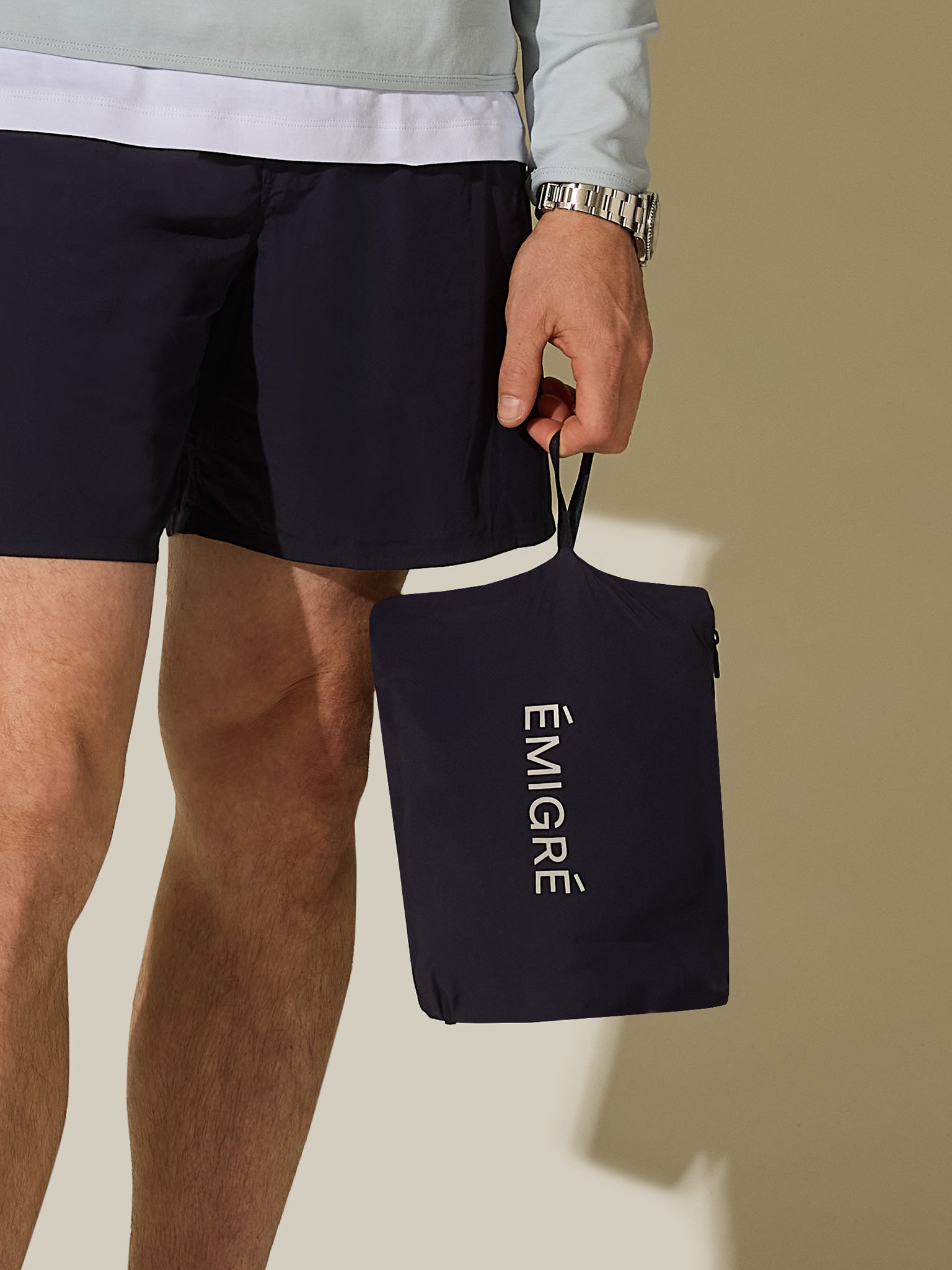 Through design innovation, our Sports Kit packs down completely into itself, with all three items – the Windbreaker, Short, and Henley – fully totable inside the Windbreaker’s compact side pocket. Work out, pack down, Travel Sharp and Work Smart.